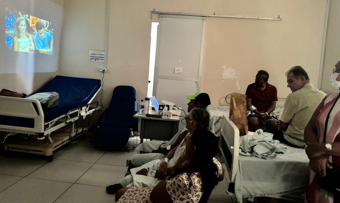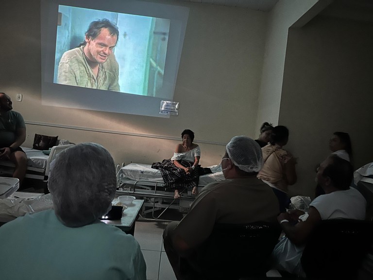 A primeira sessão de cinema no serviço foi realizada no dia 18 de junho, com a exibição do filme ‘O Auto da Compadecida’, clássico do cinema nacional. As sessões deverão acontecer duas vezes ao mês, como parte das estratégias de humanização do atendimento, com o objetivo de promover o bem-estar emocional dos pacientes e transformar o período de internação em um momento mais agradável.